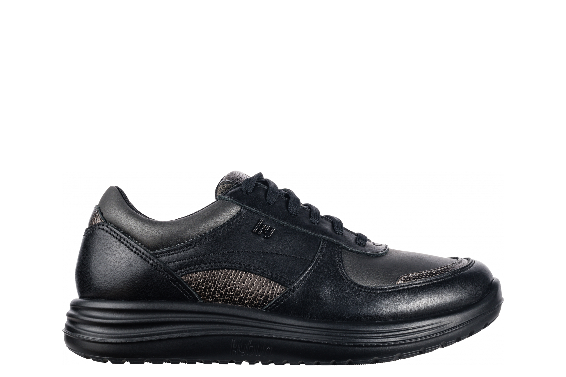 Der Vernier black hat eine Cirrus Sohle und damit einen schwächeren Trampolin-Effekt. Diese Sohle hat ein verbessertes Profil für quietschende Böden und ein "kybun-light"-Gefühl mit weniger Erstreaktionen. Dieser Sohlentyp biete eine leicht reduzierte Intensität und Wirkung. Sie ist mit ihrem "kybun-light"-Gefühl ideal für Menschen mit Schwächen in der Muskulatur oder Gleichgewichtsstörungen. Darüber hinaus hat sie eine ideale Passform für fast jeden Fuss. Zudem ist sie bestens geeignet für alle Bewegungsbegeisterten, die die kybun Schuhe auch beim Sport nicht vermissen möchten. Perfekt für Sportarten wie Tennis, Volleyball, Joggen usw., bei denen es weniger um das Gewinnen als vielmehr um schmerzfreie Bewegung geht. Die Sohle hat aufgrund der geringeren Höhe keine Luftzylinder. Die Cirrus Sohle hat auch den bewährten kybun Grip auf allen Oberflächen.
