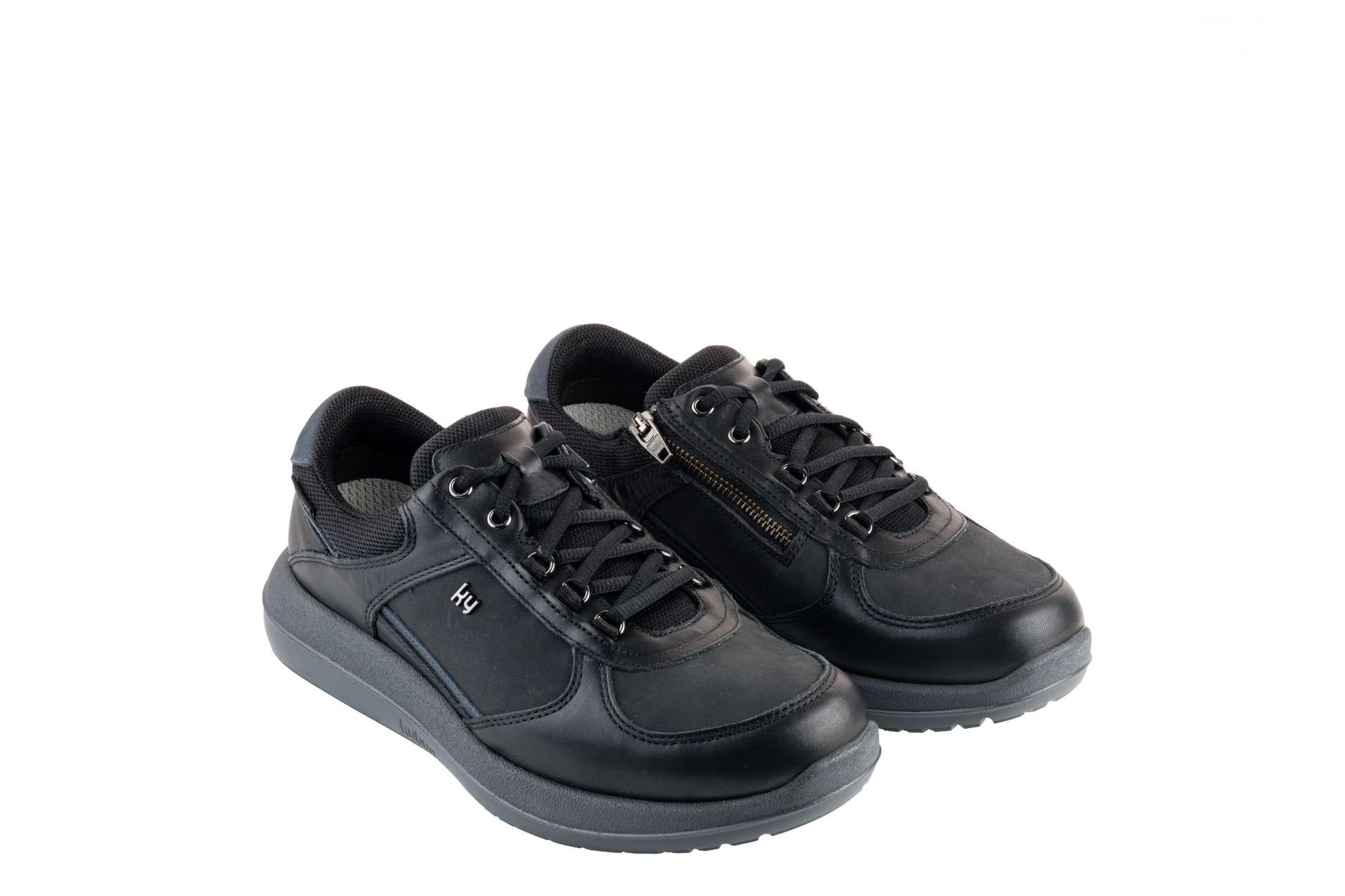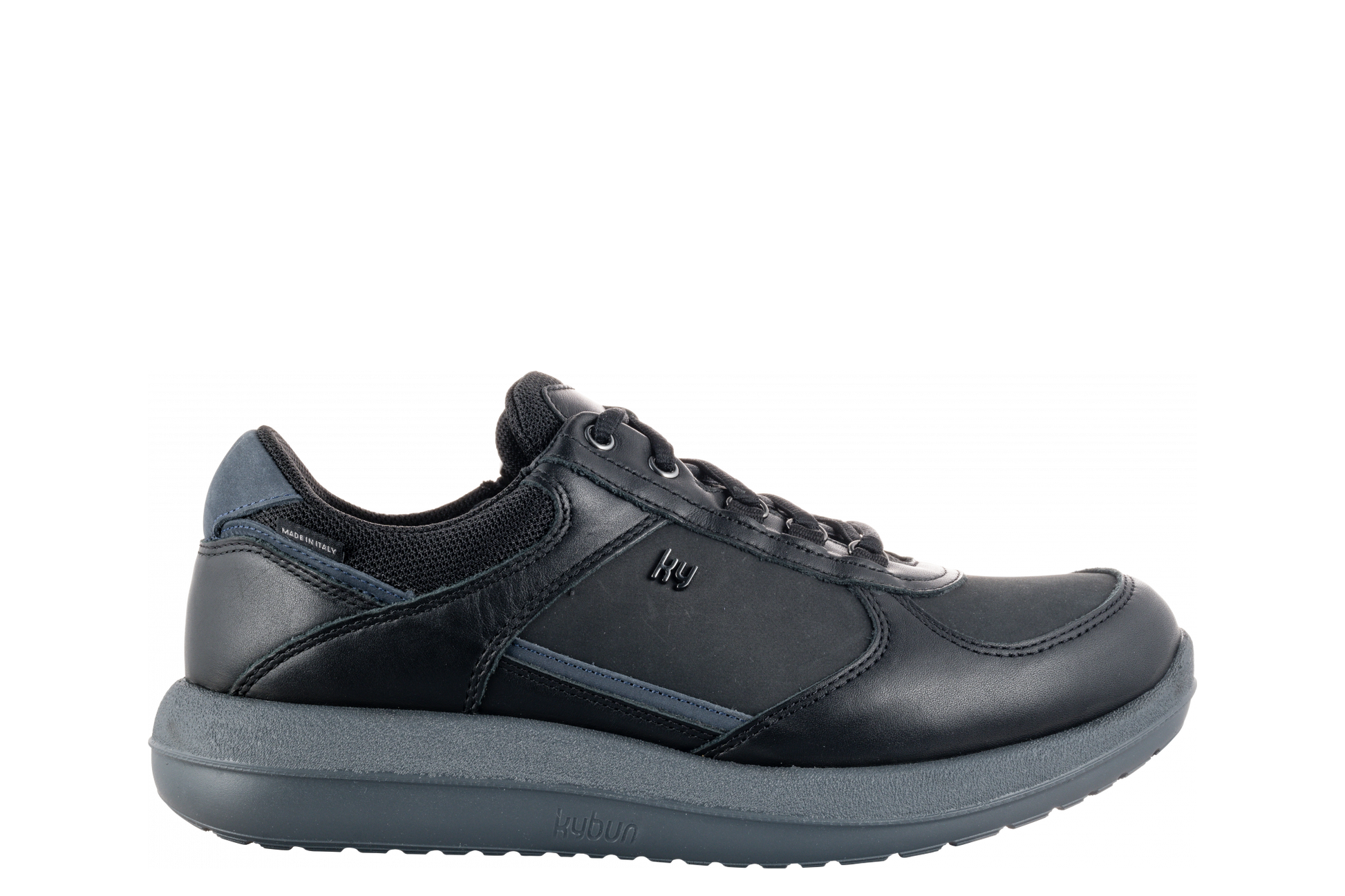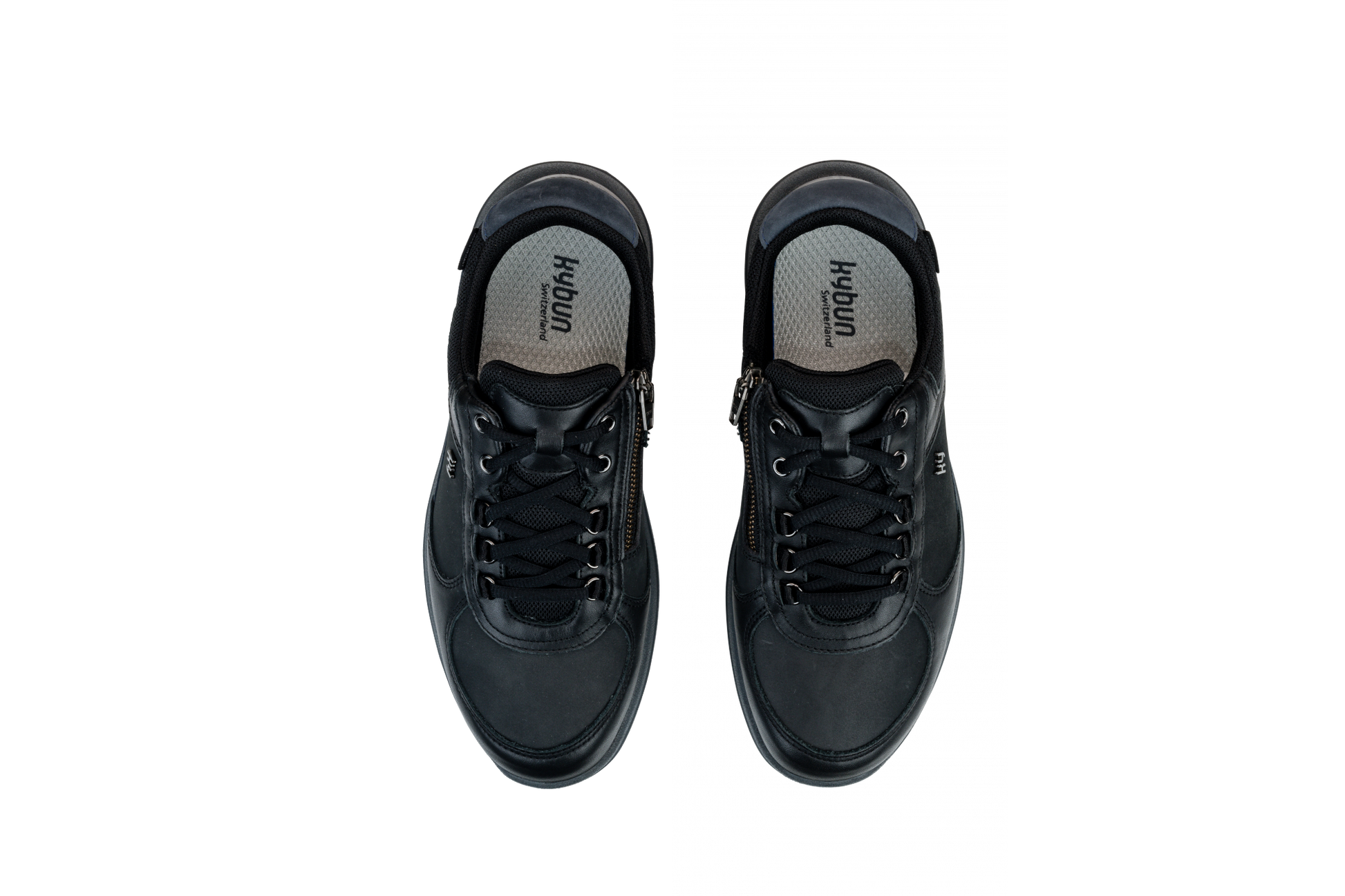 Comfortable cannot be elegant? Then we would like to introduce our traditional and playful model kybun Rolle Black. It is ideally suited for health-conscious gentlemen who don't want to miss out on playful details. Silvery eyelets lend discreet glamour to the otherwise simple design. Rolle Black is also available in the colour Rolle Navy.