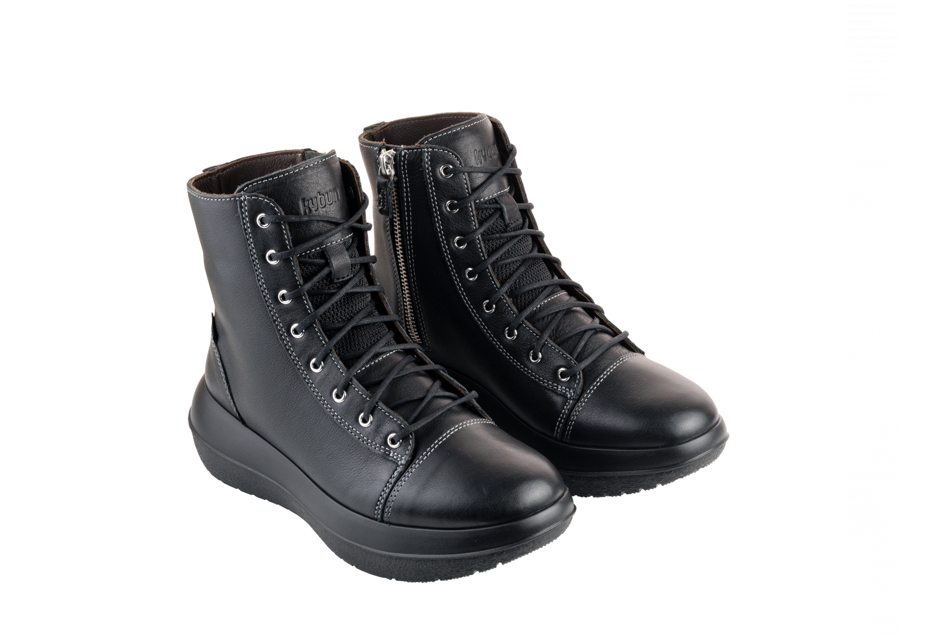The kybun Arosa 20 Black ankle boot boasts an urban style, emphasised by its rounded shaft, silver eyelets and decorative seam. Lacing allows you to perfectly customise the ankle boot’s fit against your foot. Meanwhile, a zipper closing at the side ensures that the boot is easy to put on and take off.