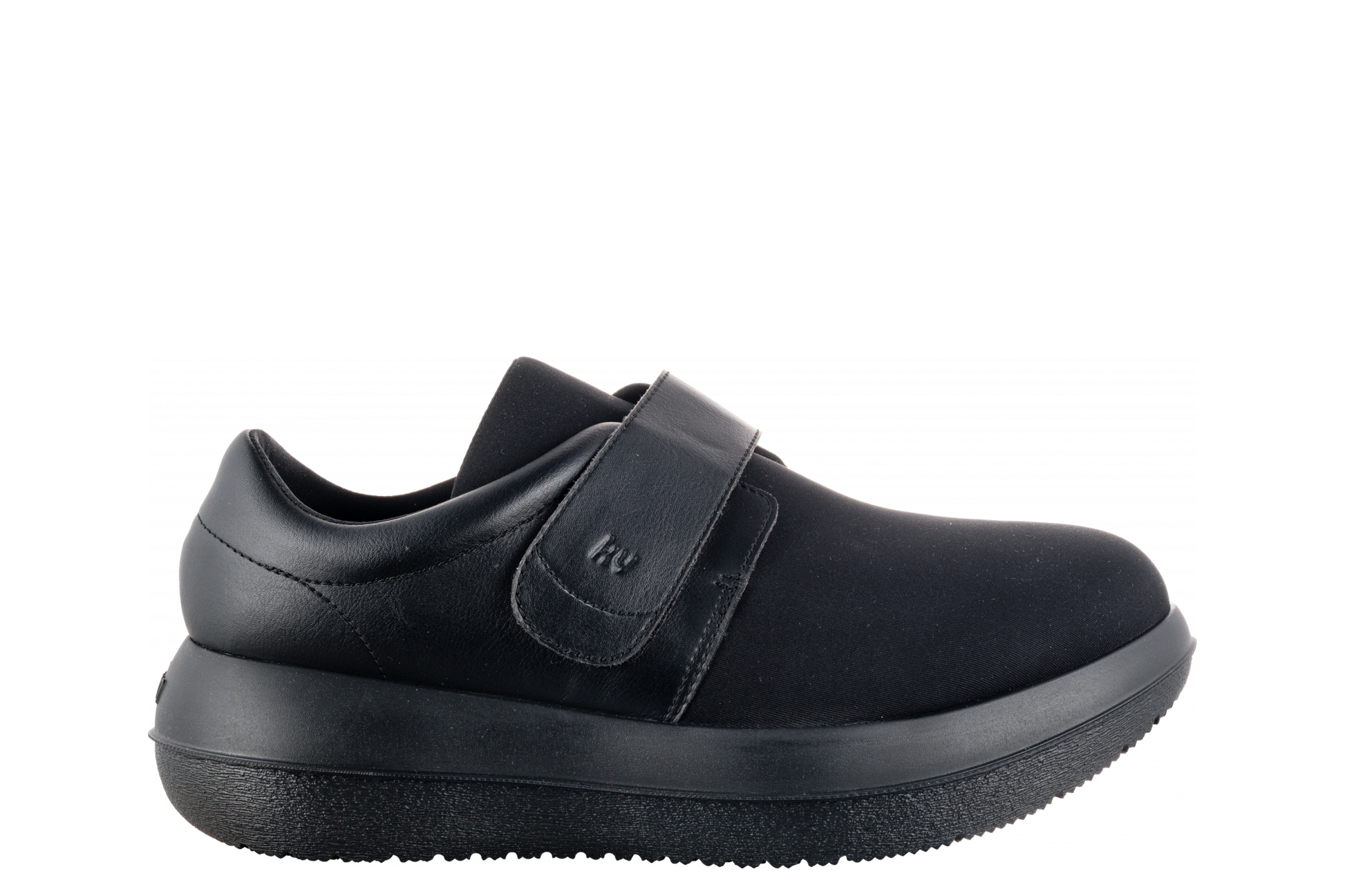 In schlichtem Schwarz präsentiert sich der Vals black. Dank seinem nahtfreien und elastischen Schaft lässt er sich optimal an den Fuss anpassen. Insbesonders bei einer Diabetes-Erkrankung, nach einer Operation oder bei öfter geschwollenen Füssen hilft dieser Schuh, der besonders für sensible Füsse geeignet ist, wieder Freude an der Bewegung zurückzugewinnen. Das Modell Vals black erscheint auf der Strato Sohle.